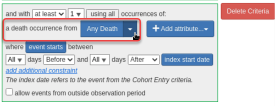 * If you are using non-standard codes, first click **Add attribute** button and select **Add Cause of Death Source Concept Criteria**.