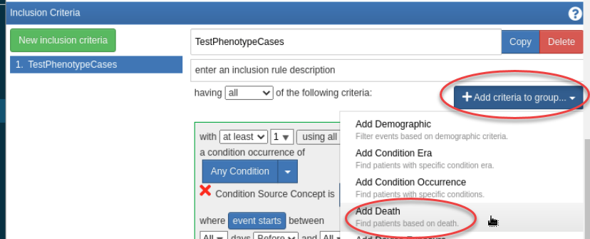 * If you are using standard codes, click the <img src="https://3072695768-files.gitbook.io/~/files/v0/b/gitbook-x-prod.appspot.com/o/spaces%2F-MhYL0UTLjqsuIdK0SSO%2Fuploads%2Fgit-blob-855c6948d52c8e3b88c9f8e1981ef968aa95ff37%2FScreenshot%202023-05-29%20at%2013.46.14.png?alt=media" alt="" data-size="line"> button next to the **"a death occurrence from"** text and select your Concept Set.