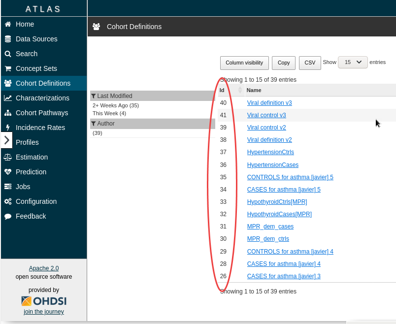You can use Atlas identifiers (IDs) for the case and control cohorts. See below how to check your case and cohort IDs.