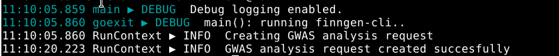 When GWAS-CLI is successfully submitted you should see the following text