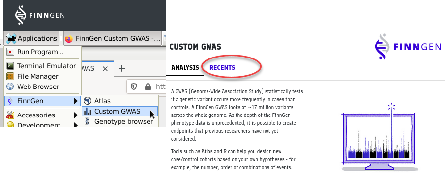 You can also check the status of your run from [the custom GWAS tool](https://docs.finngen.fi/working-in-the-sandbox/which-tools-are-available/untitled/custom-gwas-tool) `RECENTS` menu.